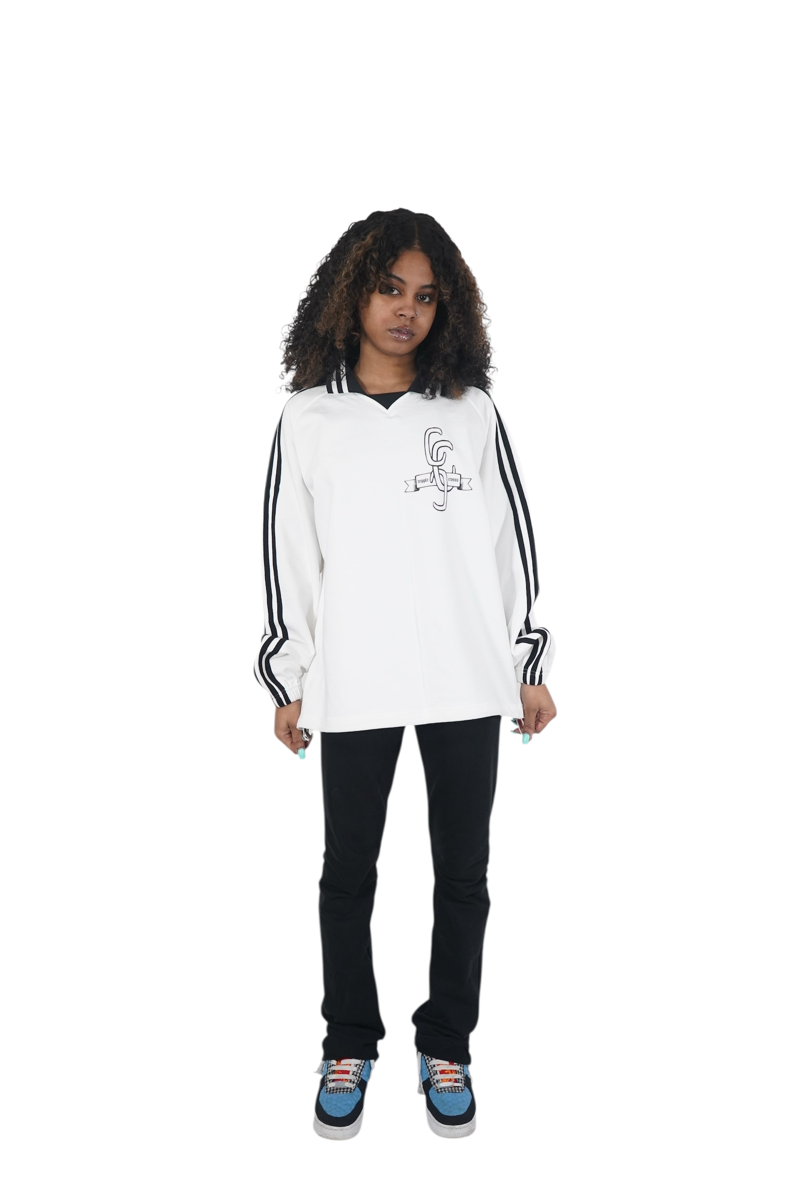 Crosss Striped Collared Sweatshirt